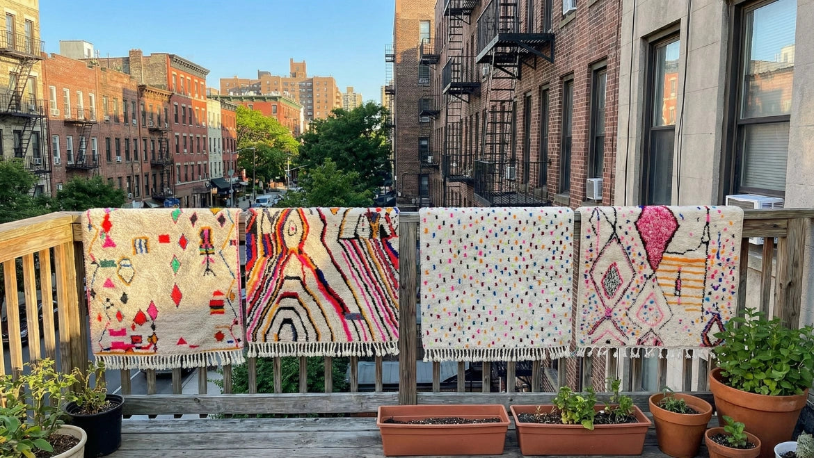 Ce tapis Azilal est marqué par le silence. Des lignes verticales fines, tissées à la main en laine naturelle, se dressent sur un fond clair, comme des présences immobiles dans un paysage intérieur. Chaque élément semble volontairement isolé, laissant respirer l’espace. Le tapis marocain... -