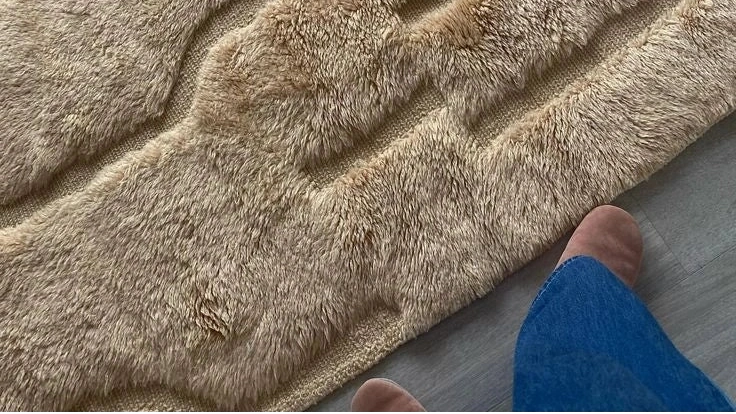 Ce tapis marocain Mrirt fait main s’inspire des formes minérales et des reliefs naturels. Tissé à la main en laine naturelle dense, il associe des tons sable et ivoire à des motifs abstraits sculptés dans la matière, révélant toute la finesse du tissage Mrirt.... -