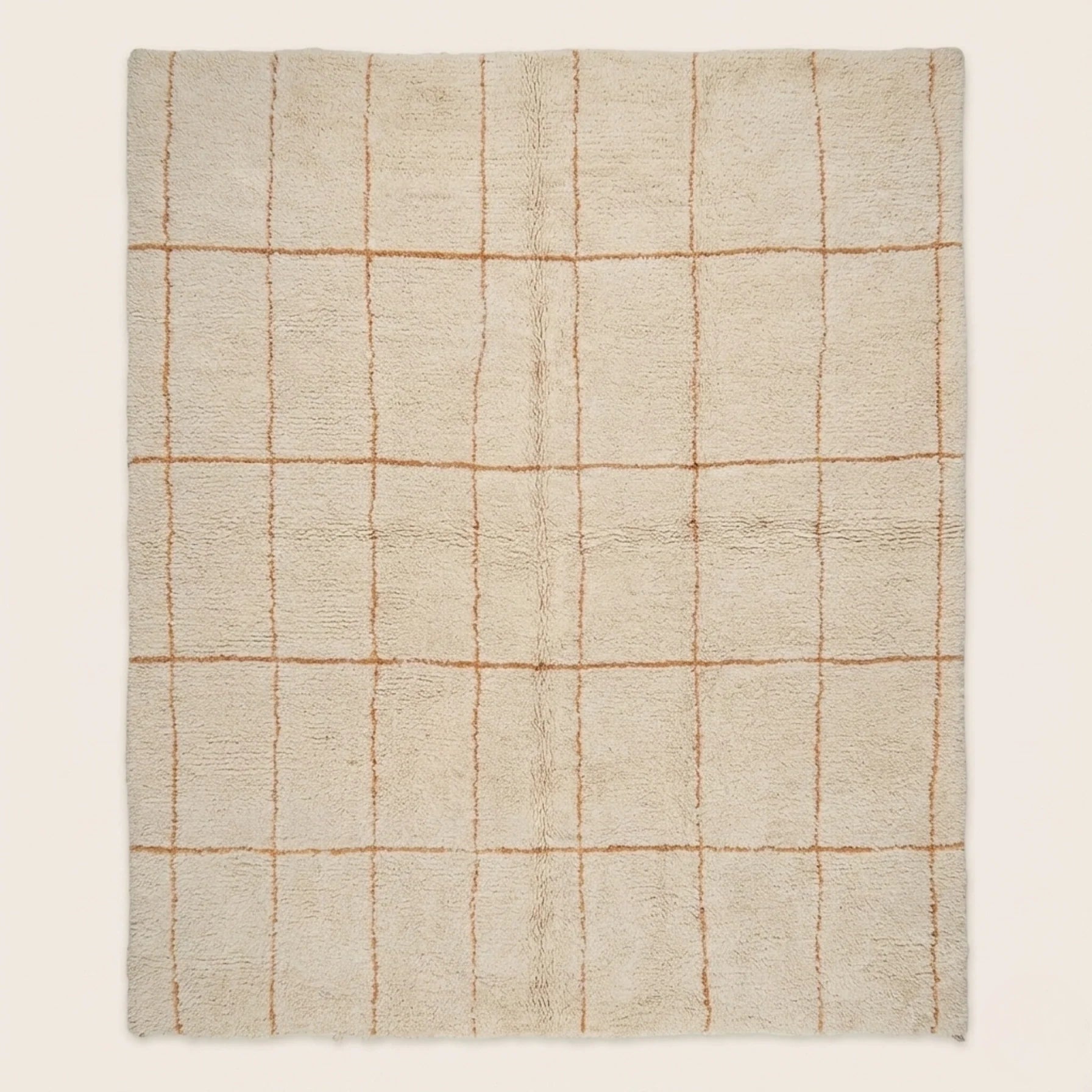 Ce tapis marocain Beni Ourain fait main se distingue par son motif quadrillé délicat, tissé à la main en laine naturelle. Les lignes fines aux nuances chaudes structurent l’espace avec douceur, offrant une lecture graphique équilibrée et intemporelle.