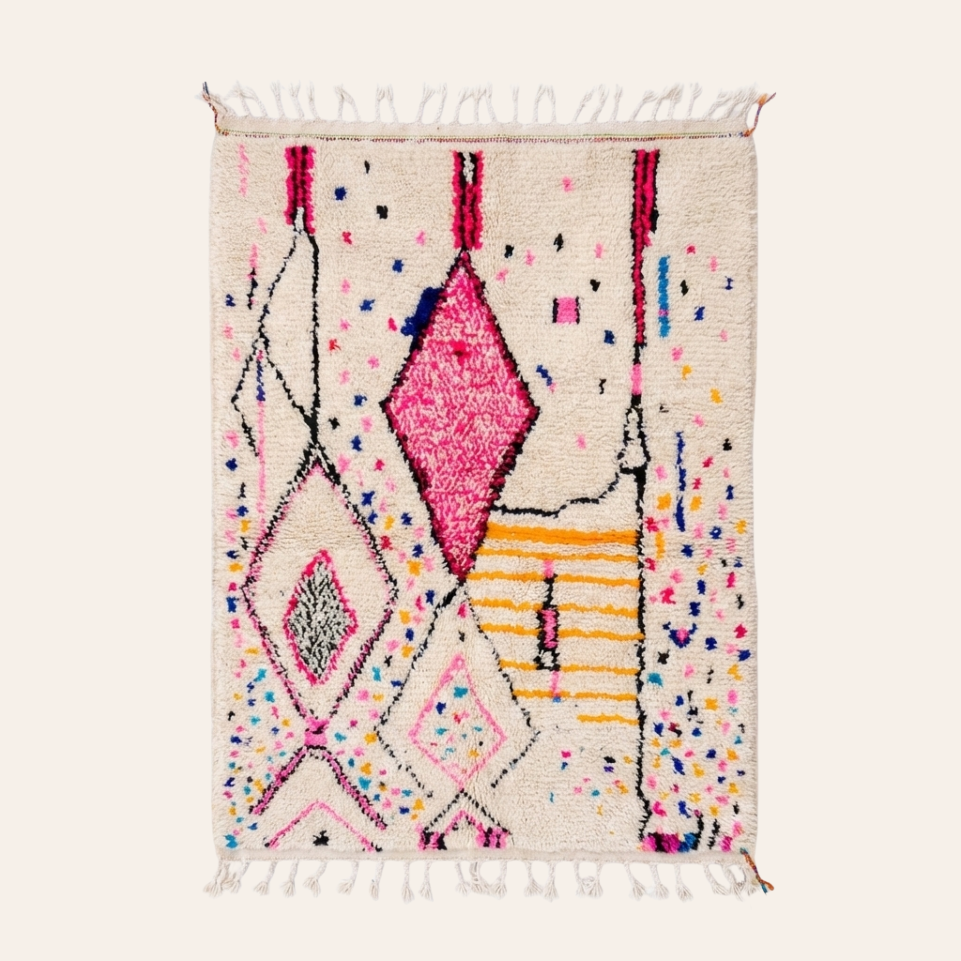 Chaque tapis est noué à la main. Fabrication sur commande disponible.